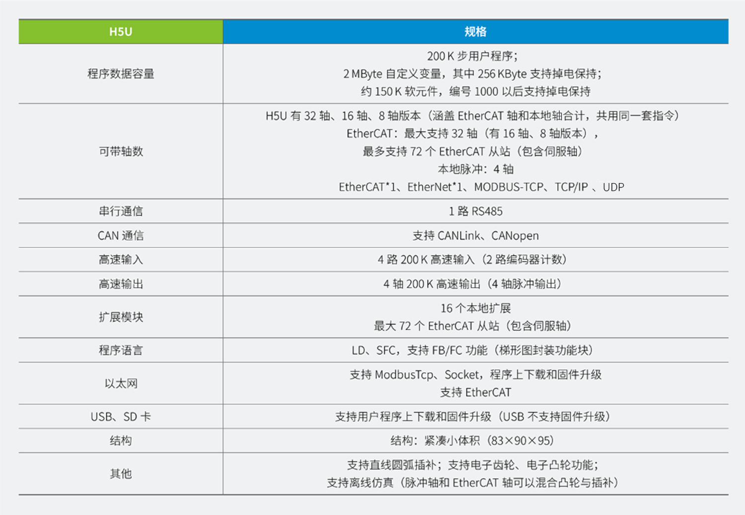 匯川技術推出首個應用EtherCAT 總線的小型PLC H5U,讓線體設備飛速運轉。隨著終端消費日趨升級,生產制造面臨巨大的壓力,而H5U 能夠簡化布線量、加快編程調試時間、滿足帶軸能力的要求以及嚴苛的成本控制需求,從容應對嚴峻的挑戰,是將EtherCAT 總線應用到小型PLC 的先鋒之作。