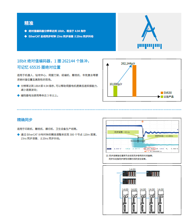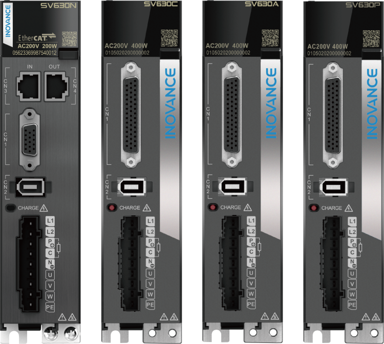 SV630 系列伺服是匯川技術研制的高性能中小功率的交流伺服產品。該系列產品功率范圍為0.05kW ~ 7.5 kW,采用以太網通訊接口,支持EtherCAT 、Modbus、CANopen 和CANLink 等通信協議,采用對應的通信接口,配合上位機可實現多臺伺服驅動器聯網運行。