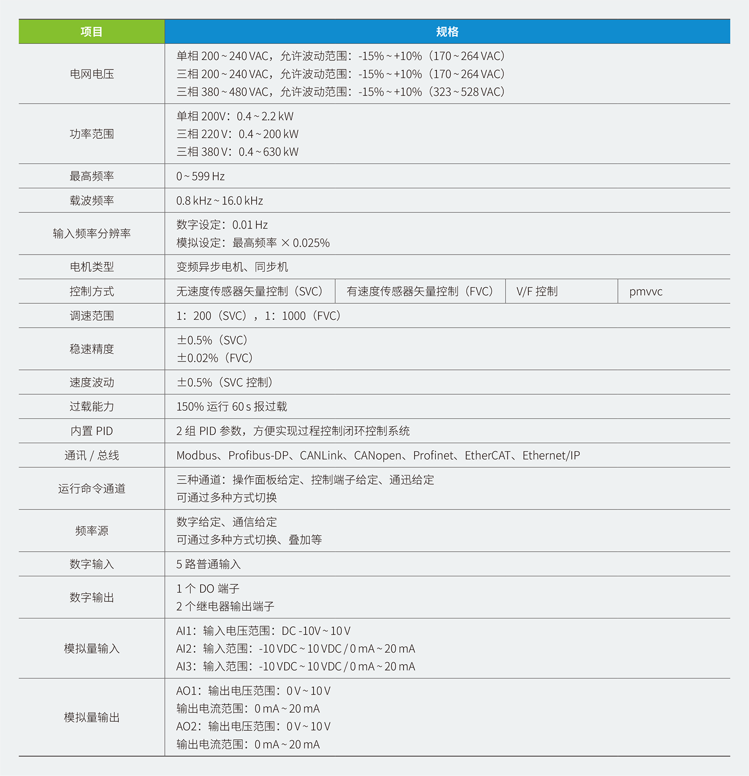 3、異步機控制性能突破:SVC 調速比提升至 1:1000;零速懸停 / 零速建張;大于 10% 輸出轉矩場合 SVC替代 FVC;SVC 收放卷轉矩精度≤ 5%